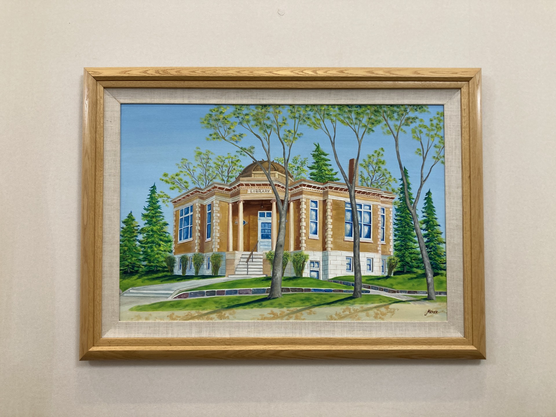 The Litchfield Public Library was originally a Carnegie Library. Although the library is now in a new building, that history is reflected in the painting of the original library in the lobby, and the Carnegie meeting room. Across the street, you can read about the history of the library on a bench installed by the Downtown Council.