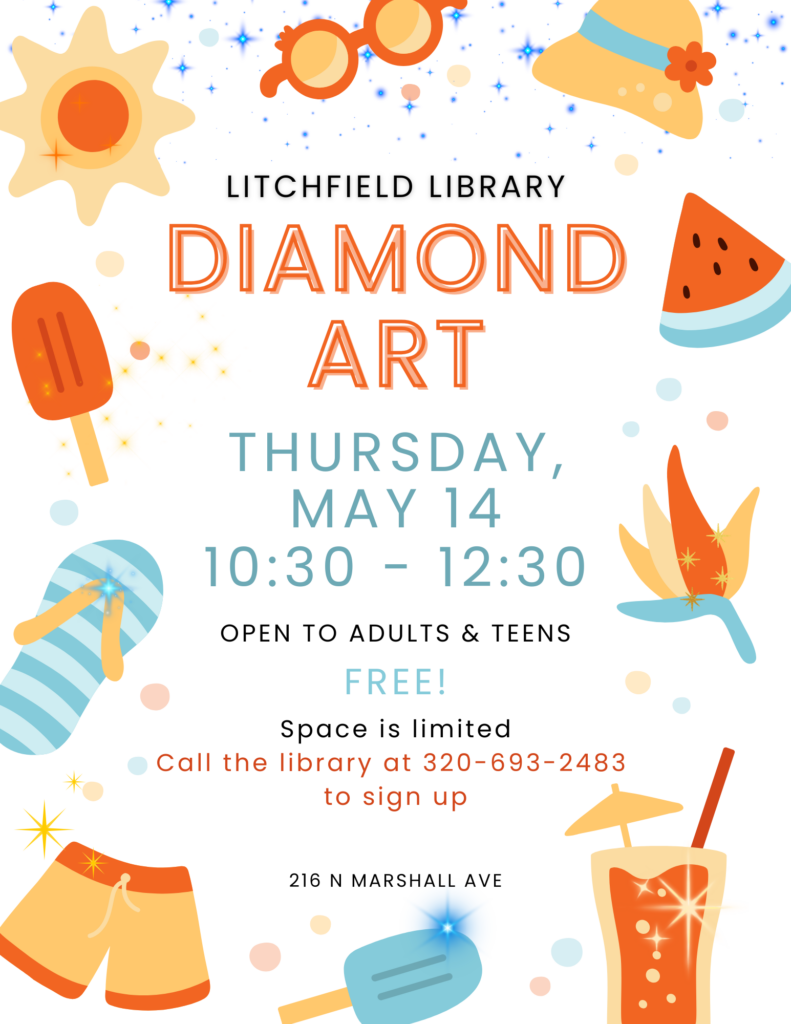 In April, Adult Arts & Crafts will be offered twice, to give more people the chance to sign up: Thursdays, April 23 and 30, at 6:30 p.m. Sign up for the date that works better for you! Call the library at 320-693-2483 or stop at the front desk to sign up for this free class. Adults only.