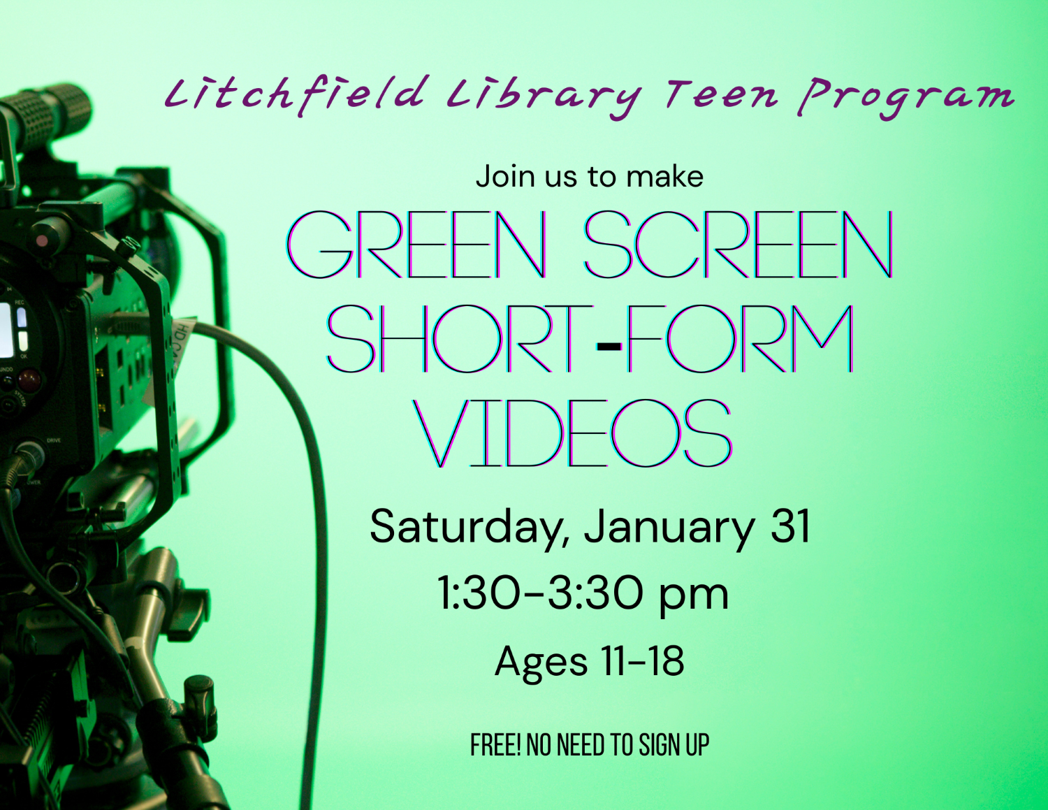 This program is held on the 2nd Tuesday of the month, 6:30-7:30 p.m. No need to sign up.